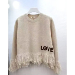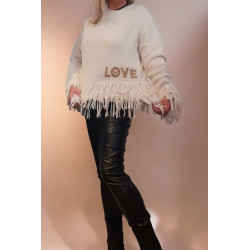 Fransen Pullover Love, offwhite, beige oder braun